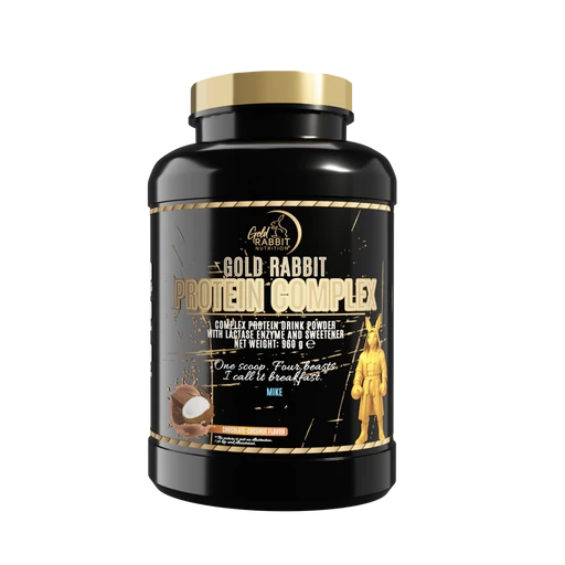 A Gold Rabbit Protein Complex egy négykomponensű fehérje italpor, amely szója-fehérjeizolátumot, tejsavófehérje-koncentrátumot, hidrolizált marhafehérje-peptideket és tojásfehérje-port tartalmaz egyetlen formulában. A különböző felszívódási sebességű fehérjeforrások kombinációja biztosítja a szervezet tartós aminosav-ellátását. A formula laktáz enzimet is tartalmaz, hozzáadott E-vitamin (D-alfa-tokoferol) antioxidánssal egészül ki, és mindössze 118 kcal adagonként. Csokoládé-kókusz ízben, szukralózzal édesítve.