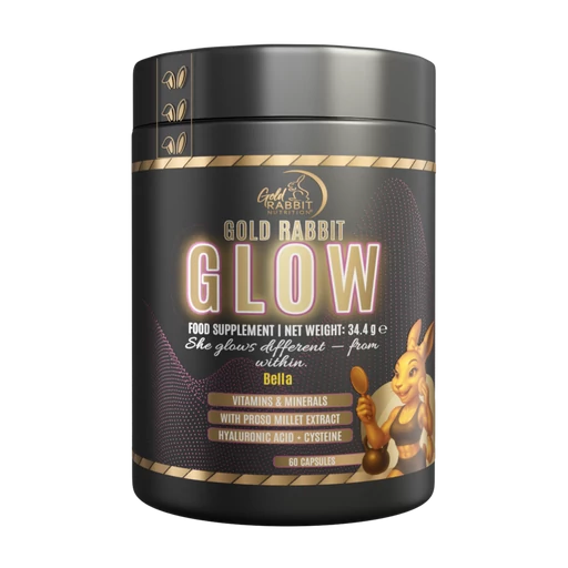 A Rabbit Glow egy 60 kapszulás komplex hajvitamin készítmény aranyköles kivonattal, hialuronsavval, L-ciszteinnel, valamint teljes vitamin- és ásványianyag-komplexszel. Különösen magas biotin tartalommal (900 µg/adag - 1800% NRV). A biotin hozzájárul a normál haj fenntartásához. A cink hozzájárul a normál haj, bőr és köröm fenntartásához. A szelén és a cink hozzájárulnak a normál köröm fenntartásához. Napi 1 kapszula a szépségápolás támogatásához belülről.